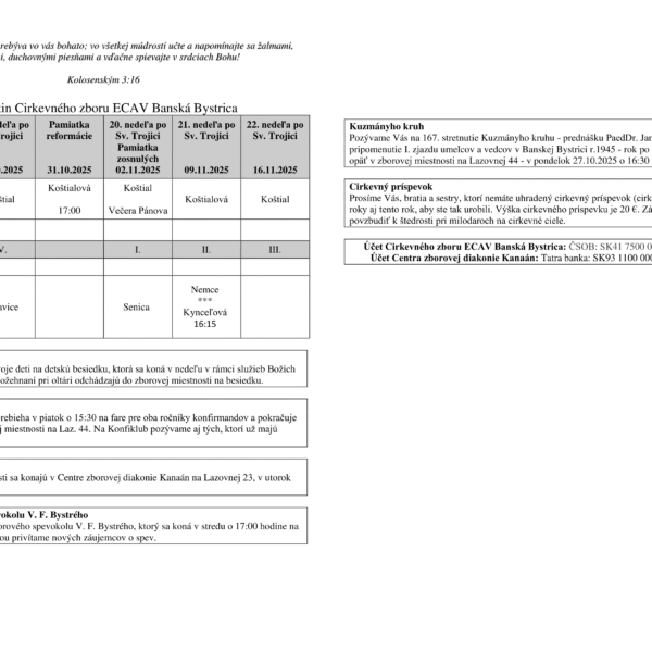 Rozpis oznamov a bohoslužieb na október a november 2025.