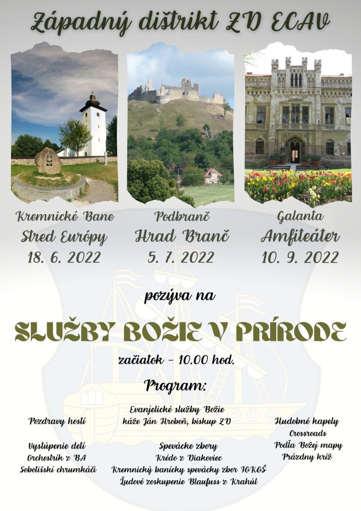 Západný dištrikt ECAV pozýva na služby Božie v prírode, ktoré sa budú konať v sobotu 18. 6. 2022 v Kremnických baniach – stred Európy so začiatkom o 10:00 hodine.
