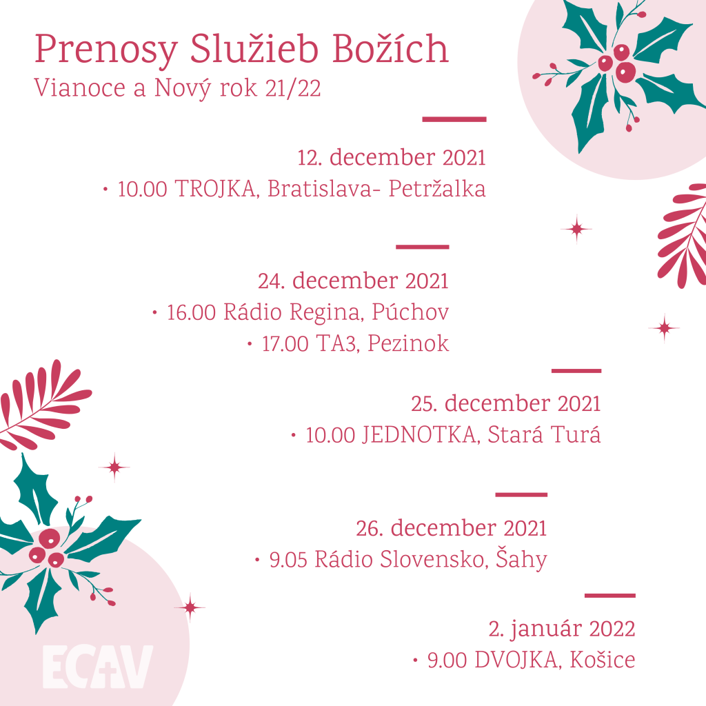 Televízne služby Božie počas adventu, Vianočných a novoročných sviatkov 3. decembra 2021 Bratia a sestry, dávame Vám do pozornosti televízne a rozhlasové služby Božie počas adventu, Vianočných a novoročných sviatkov.
